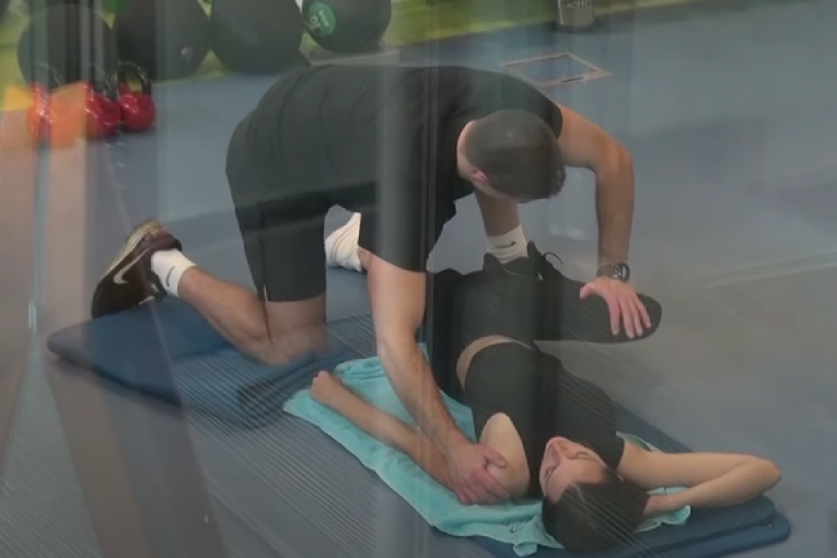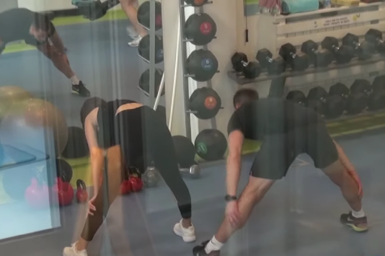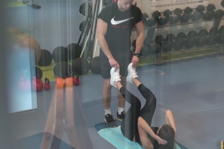 Trener nije mogao da ostane imun na Aleksandrinu figuru, a ona je tokom izvođenja čučnjeva pokazala zavidnu figuru.