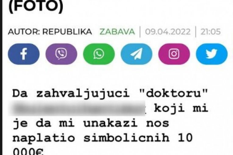 Tamara Đurić oglasila se za Republika.rs povodom novog nosa kojim nije zadovoljna i najavila tužbu.