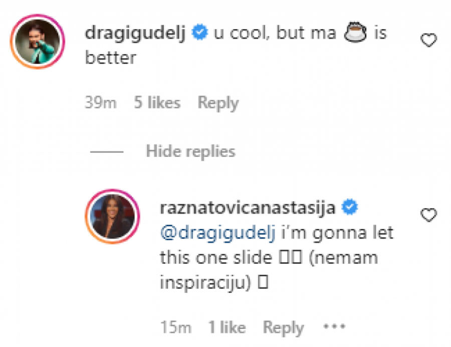 - Ti si kul, ali moja kafa je bolja - napisao je Anastasijin dever ispod pevačicine fotografije (prva u tekstu), ali ona nije imala ovog puta neku inspiraciju da mu odgovori na šalu.