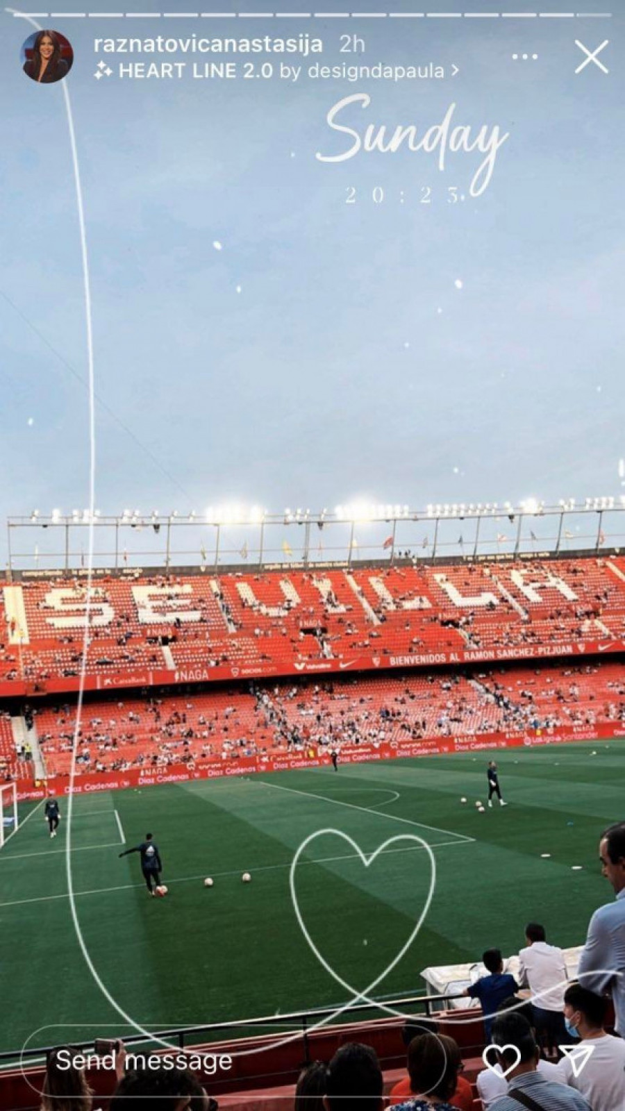 Ražnatovićeva je objavila i stori koji je nastao pred utakmicu, kada su se fudbaleri zagrevali pred meč.
