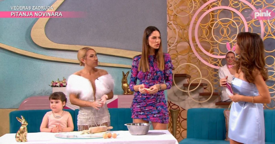 - Ovo je prvi put da možete da vidite voditeljku u večernoj haljini sa brašnjavim rukama - rekla je Sanja, a Jeremićeva je ponosno pokazala ruke kojima je mesila testo.