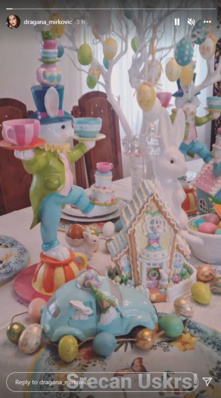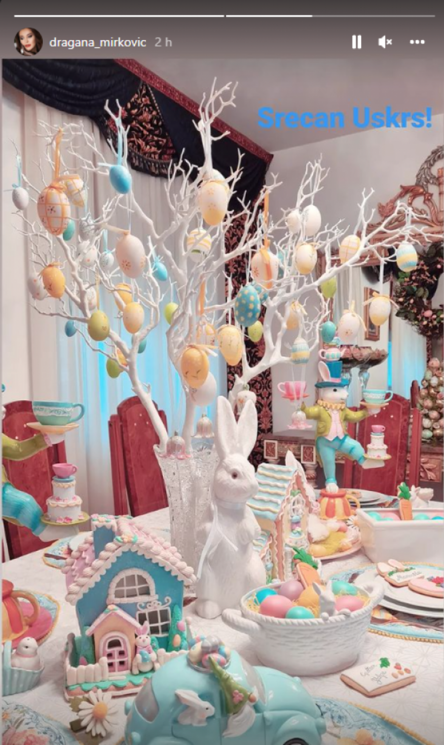 Pevačica Dragana Mirković putem Instagram profila čestitala je svojim pratiocima najveći hrišćanski praznik Vaskrs, a tom prilikom pokazala je kako izgleda dekoracija u njenom luksuznog dvorcu.