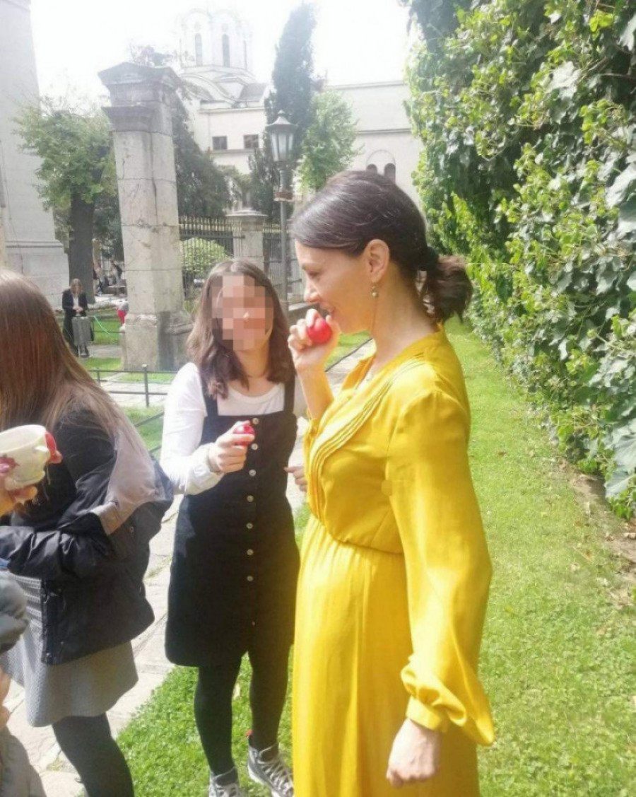 Veoma opušteno druženje, Sloboda je provela sa ćerkama na travi, gde su sve tri sedele i pojele svoja vaskršnja jaja. I dok su Mila i Vera bile u crno belim kombinacijama, lepa glumica je za liturgiju izabrala dugu, žutu, lepršavu haljinu.
