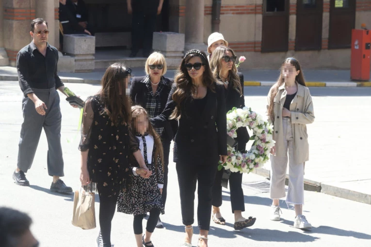 Na sahranu je stigla njegova supruga voditeljka Nikolina Pišek u pratnji ćerke Une Sofije i Matee.