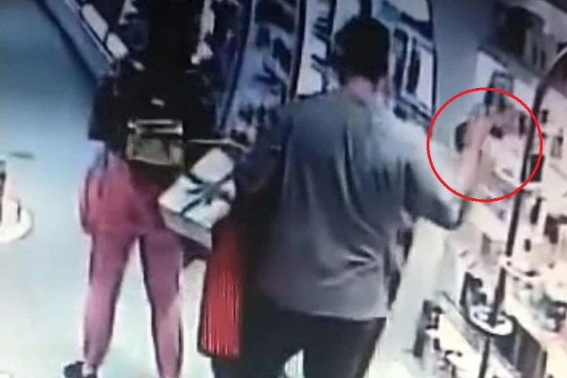 Njih dvoje su opušteno napustili prodavnicu sa parfemom, dok su radnici parfimerije na snimku videli kako je ovaj par iz prodavnice izašao bogatiji za skupoceni parfem.