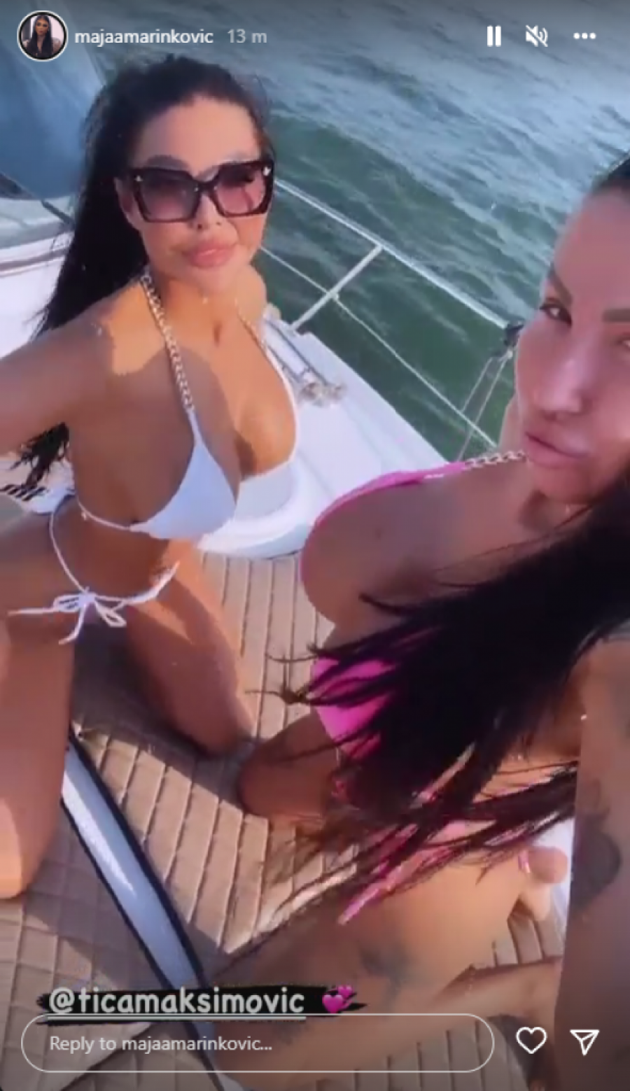 Na Instagram profilu Maja je objavila vreli snimak, na kom je pozirala sa Tijanom, a u prvi plan istakle su njihove obline. Jahta se sve vreme ljuljala na reci, a za to vreme sunce je pržilo kožu poznatih straleti, koje su svojim pratiocima priuštile nezaboravne kadrove, naročito kada su muškarci u pitanju.