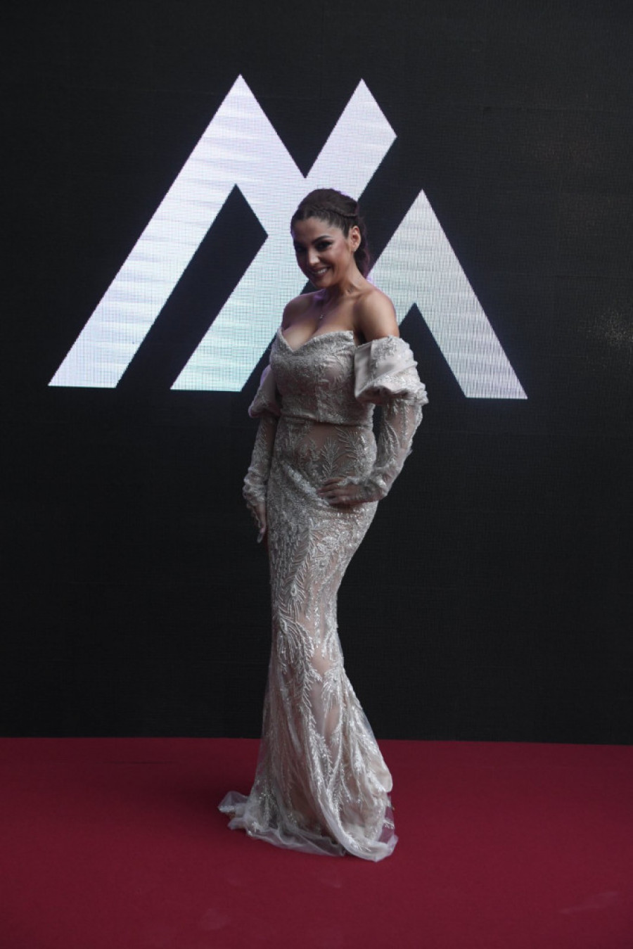 Pevačica je vidno raspoložena na promociji, te je rado pozirala fotoreporterima, a obukla je svečanu haljinu bež boje.