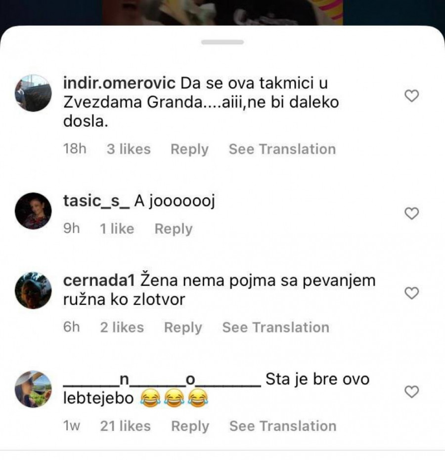 - Da se ova takmiči u "Zvezdama Granda" ne bi daleko dogurala. Žena stvarno nema pojma što se pevanja tiče" - samo su neki od komentara ispod objave.
