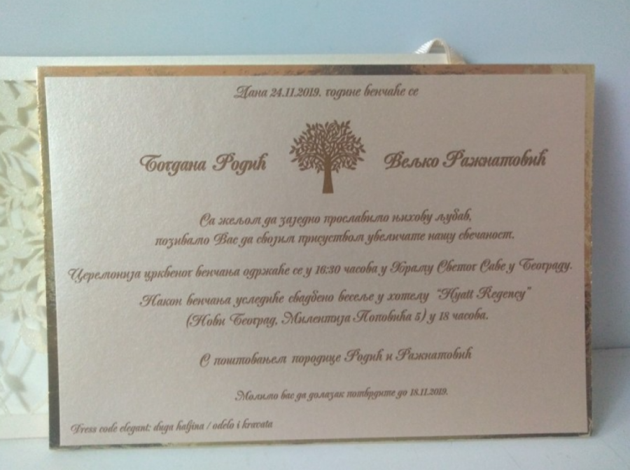 Prodaje se pozivnica za svadbu Veljka i Bogdane Ražnatović.