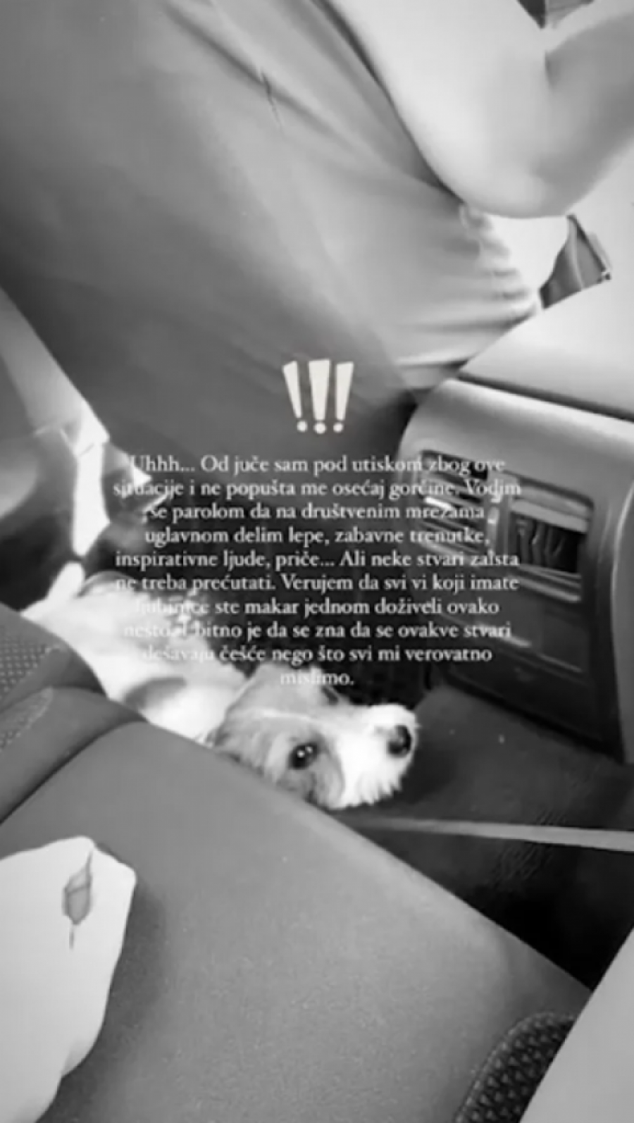 - Uh... Od juče sam pod utiskom zbog ove situacije i ne pušta me osećaj gorčine. Vodim se parolom da na društvenim mrežama uglavnom delim lepe, zabavne trenutke, inspirativne ljude, priče... Ali neke stvari zaista ne treba prećutati. Verujem da ste svi vi koji imate ljubimce makar jednom doživeli ovako nešto. I bitno je da se zna da se ovakve stvari dešavaju češće nego što mi svi verovatno mislimo.