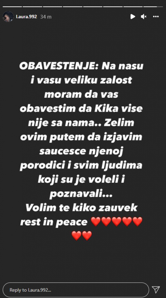 Poznata jutjuberka Kristina Kika Đukić preminula je prošla godina 8. 12, a vest o njenoj smrti prvo je saznao portal Republika.rs. Tad se na društvenoj mreži Instagram oglasila i Kikina drugarica, koja je objasnila da će ona voditi njen profil, te je potvrdila naša pisanja da je mlada jutjuberka zaista iznenada preminula.