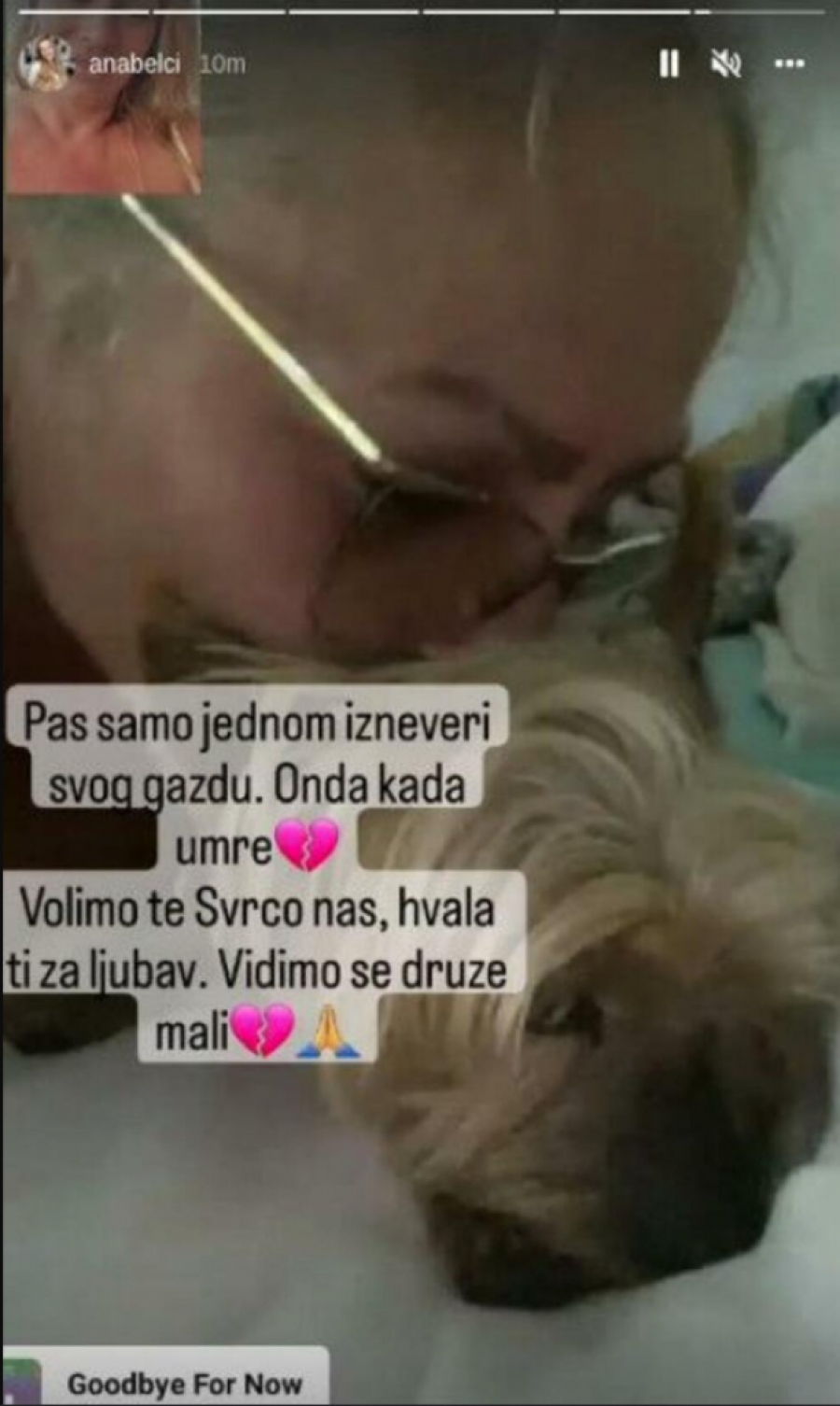 – Pas samo jednom izneveri svog gazdu, kada umre. Volimo te Švrćo naš, hvala ti za ljubav. Vidimo se druže mali – napisala je slomljena Anabela.