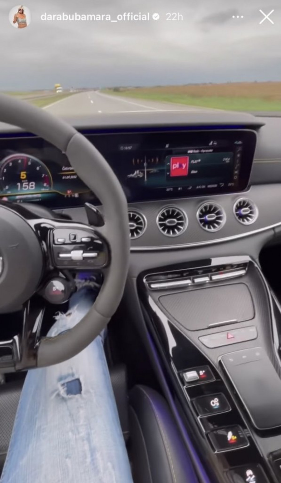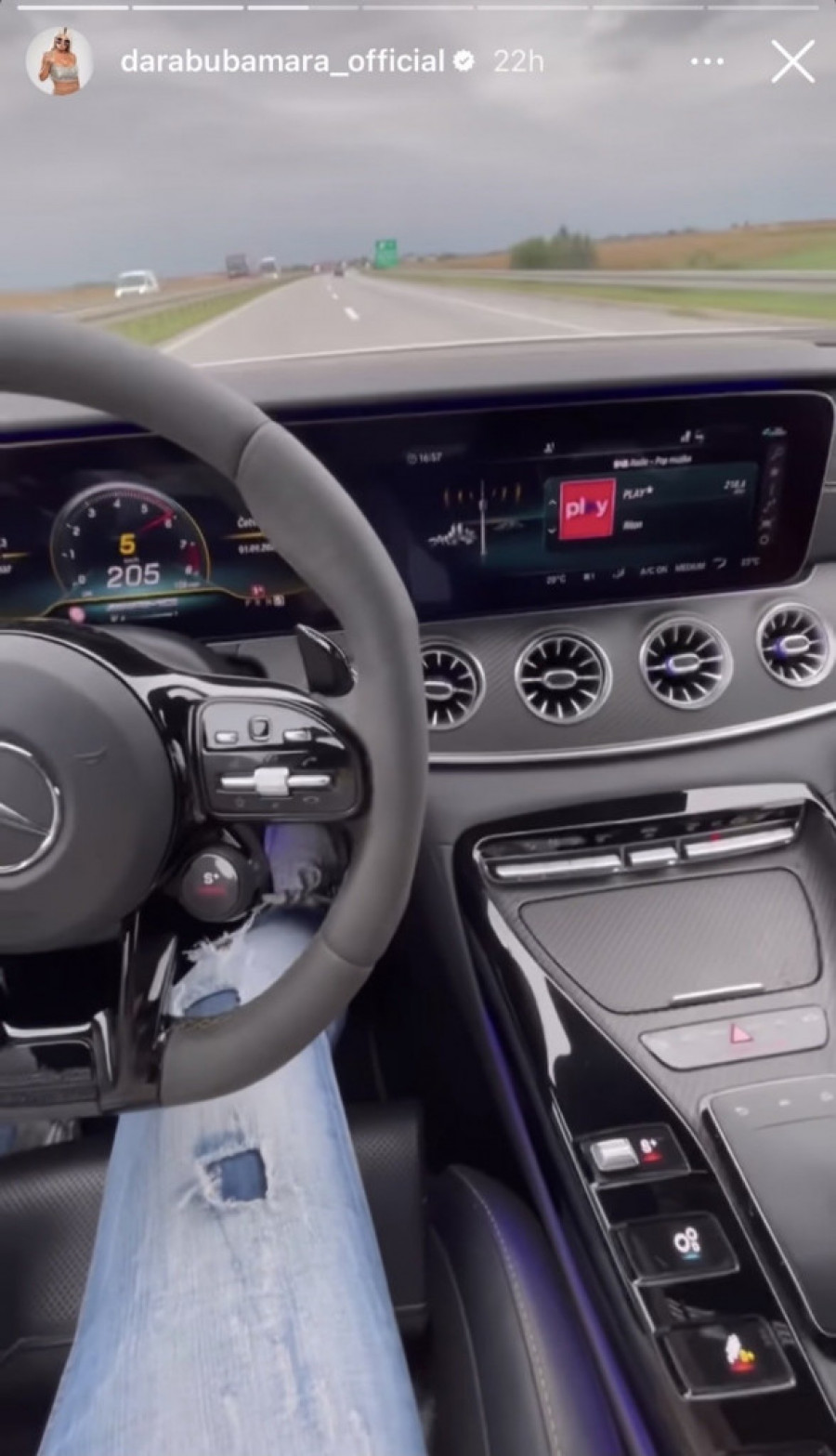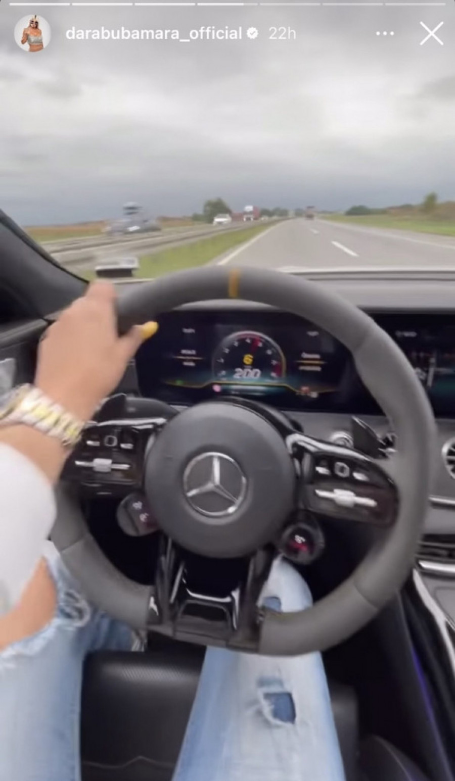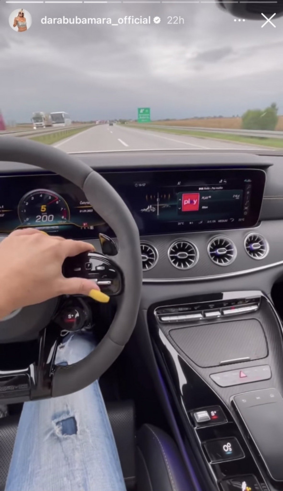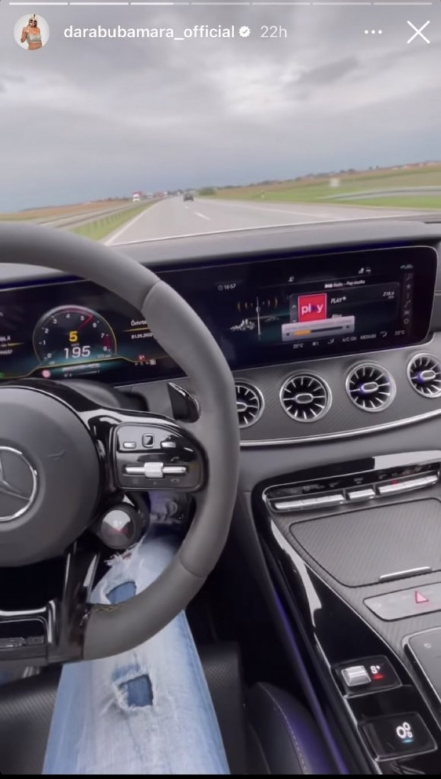 Ovog puta pevačica je otišla korak dalje, pa je tokom vožnje skupocenog mercedesa, čija brzina je u momentu kad je snimak nastao prelazia 200 kilometara na čas, Dara u jednom trenutku pustila volan i, dok je jednom rukom snimala, drugom je pojačavala muziku!