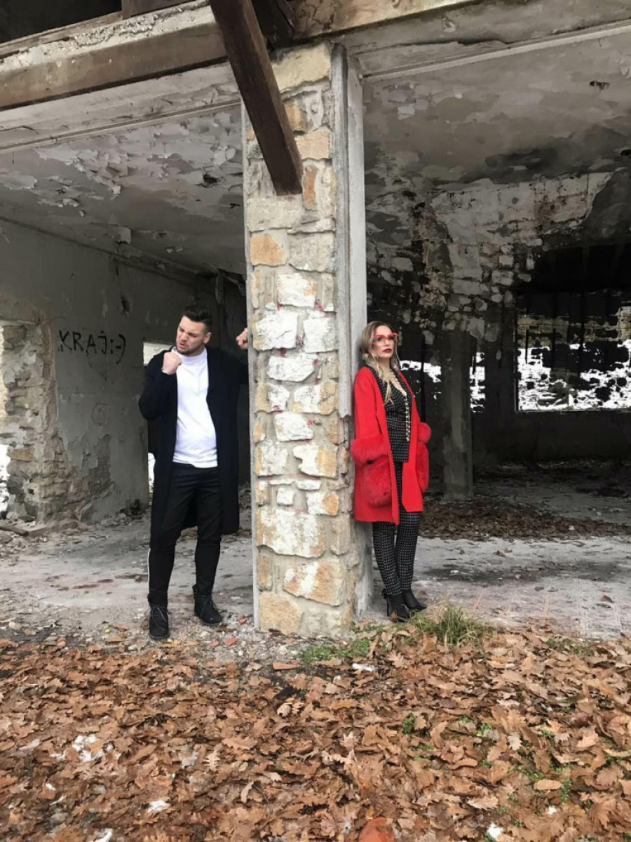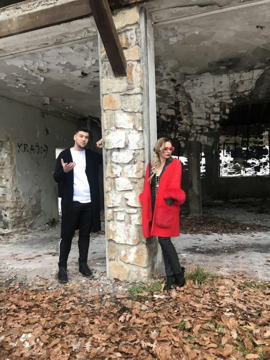 Jelena i Nemanja su juče na otvorenom, kraj jezera Trešnja na Avali u Beogradu, snimili kadrove u poprilično nezahvalnim uslovima jer je temperatura i u centru grada u tom trenutku bila oko nula stepeni, a kraj jezera je bilo još i hladnije.
