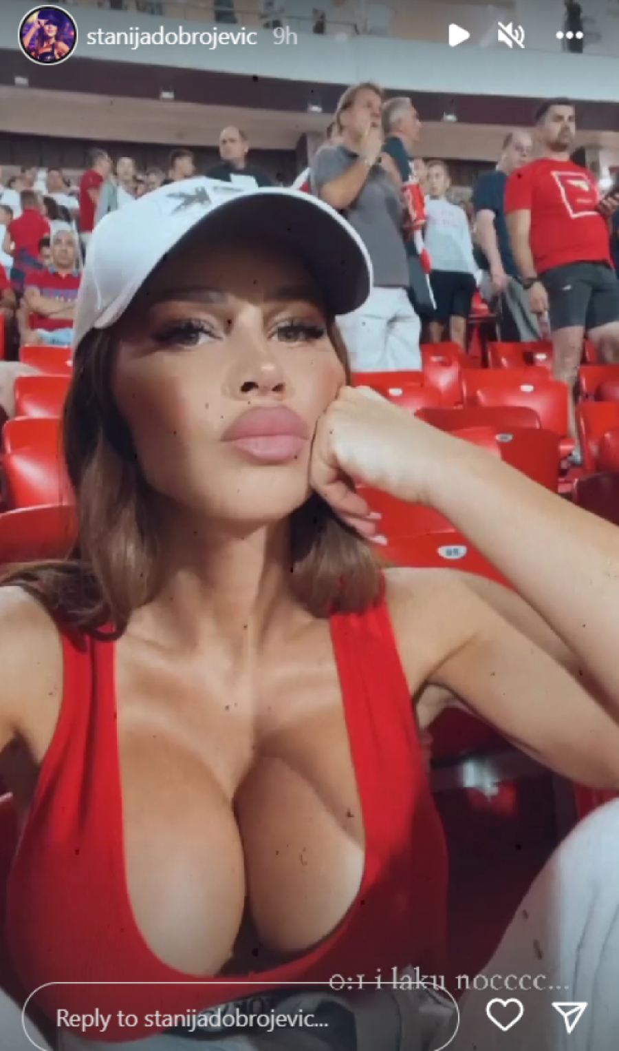 Naime, starleta Stanija Dobrojević pratila je utakmicu sa tribine sa svojim bratom, a koliko god da je baklji bilo upaljeno i užarena atmosfera, Stanija je bila vrelija. Ona se pojavila golog stomaka i minijaturnog topa, koji jedva da je prekrio njene bombastične grudi.