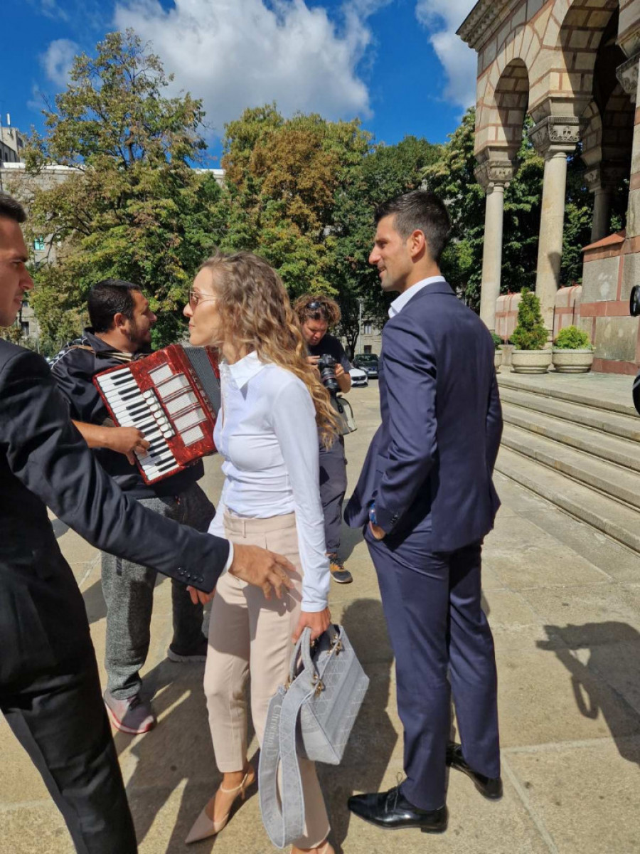 Crkveno venčanje biće odžano u Crkvi Svetog Marka, a porodica Đoković se cela okupila na ovom svečanom činu. Mladoženja je došao u luksuznom automobilu marke ''Bentli'', a veselje je počelo već ispred crkve.