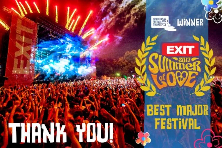 EXIT je zvanično najbolji festival Evrope, objavljeno je sinoć na dodeli Evropskih festivalskih nagrada u Holandiji! EXIT je pobedio u glavnoj kategoriji u konkurenciji sa vrtoglavih 350 festivala iz više od 35 zemalja, uz preko milion glasova publike i mišljenje stručnog žirija sastavljenog od najeminentnijih ljudi svetske muzičke industrije. Exitovi festivali bili su u finalu u čak šest kategorija, a sam EXIT u rekordne tri kategorije, uključujući i osvojenu glavnu nagradu za najbolji veliki evropski festival, te najboljeg festivalskog organizatora u Evropi i nagradu "Take a Stand" za društveni aktivizam!