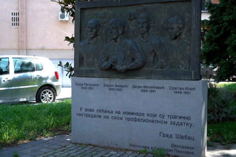 - U znak sećanja na novinare koji su tragično nastradali na svom profesionalnom zadatku. Grad Šabac - stoji ispisano na spomeniku.