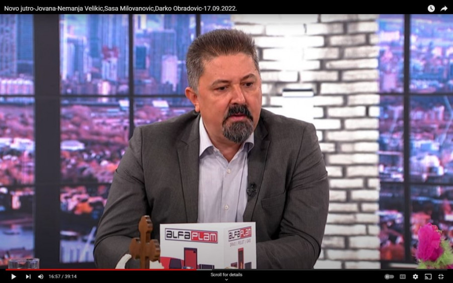 Direktor Srpskog telegrafa Saša Milovanović gostovao je u emisiji kod Jovane Jeremić, gde je govorio o tome kako je jutjuber zaglibio toliko da iz blata, u koje se uvalio, više nikako ne može da izađe.