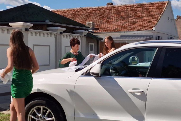 Naime, Bojanina baba je izašla pred kuću kako bi okitila kola prema običajima i to vezenim peškirima, kako se to odavnina radilo i radi u našoj zemlji.