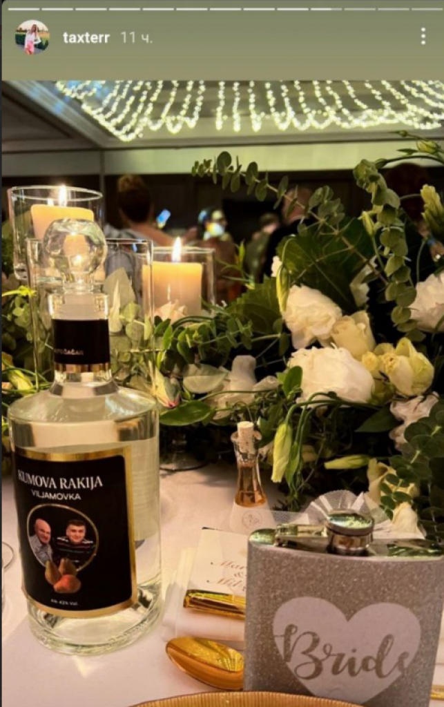 Ono što je svima privuklo pažnju jeste slika sa venčanja Mihajla i Marine. Naime, na Instagramu se pojavila fotografija flaše u kojoj se nalazila rakija, a na njoj je bio lik pokojnog Šabana.