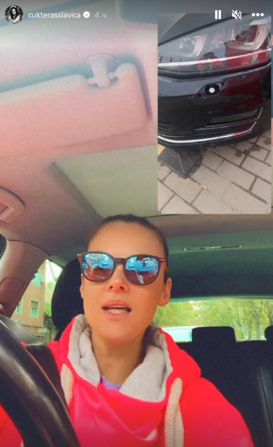 - Jedan veliki pozdrav za komšiju koji mi je skinuo poklopac prskalice fara. Da voziš u sreći i veselju! - poručila je pevačica u video snimku koji je podelila putem Instagrama, a uz to je objavila i fotografiju dela automobila koji nedostaje.