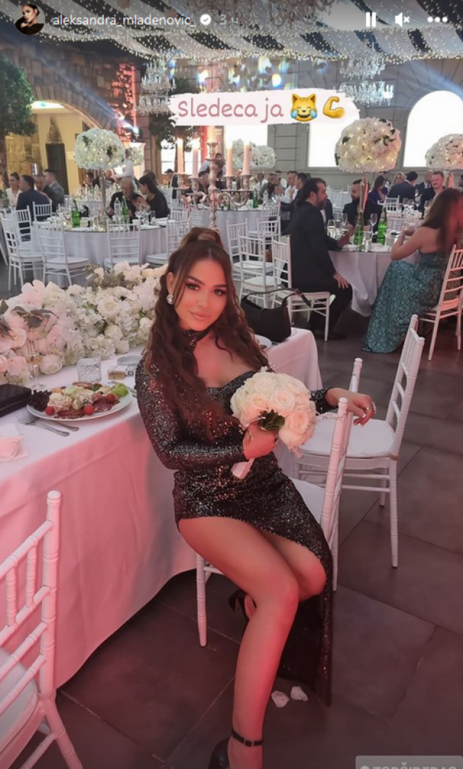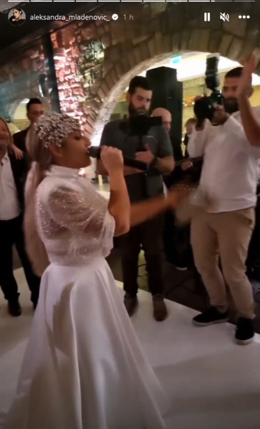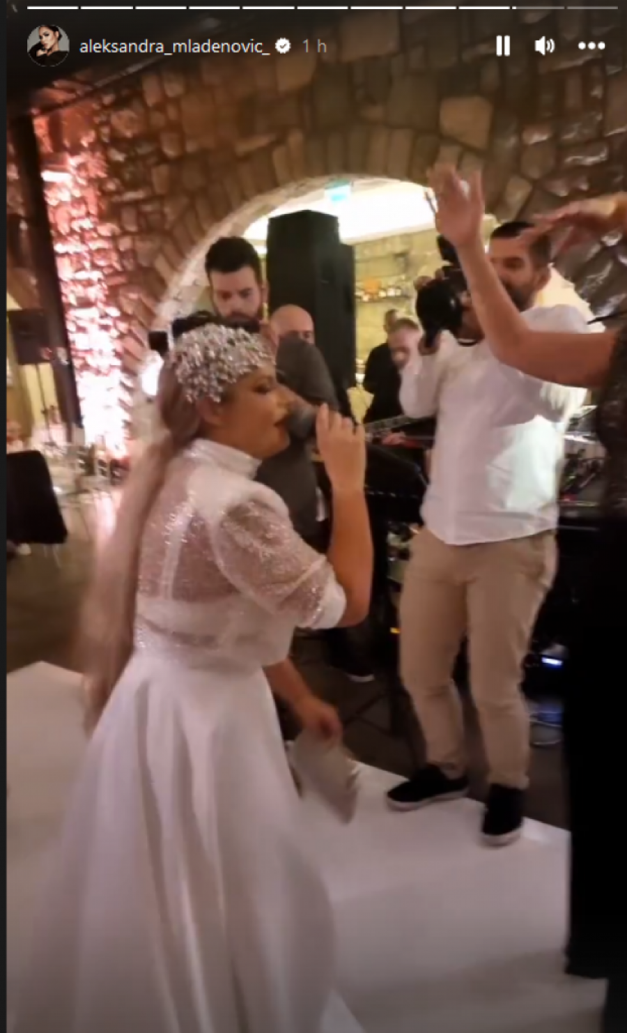 Aleksandra se potom pohvalila da je uhvatila bidermajer, a putem društvenih mreža podelila je snimak na kom se vidi da se zvanice, ali i mladenci odlično provode.