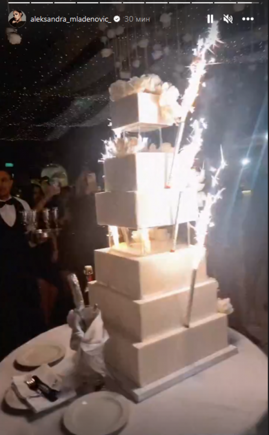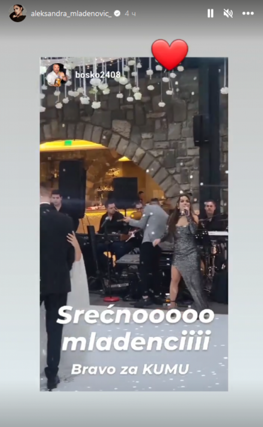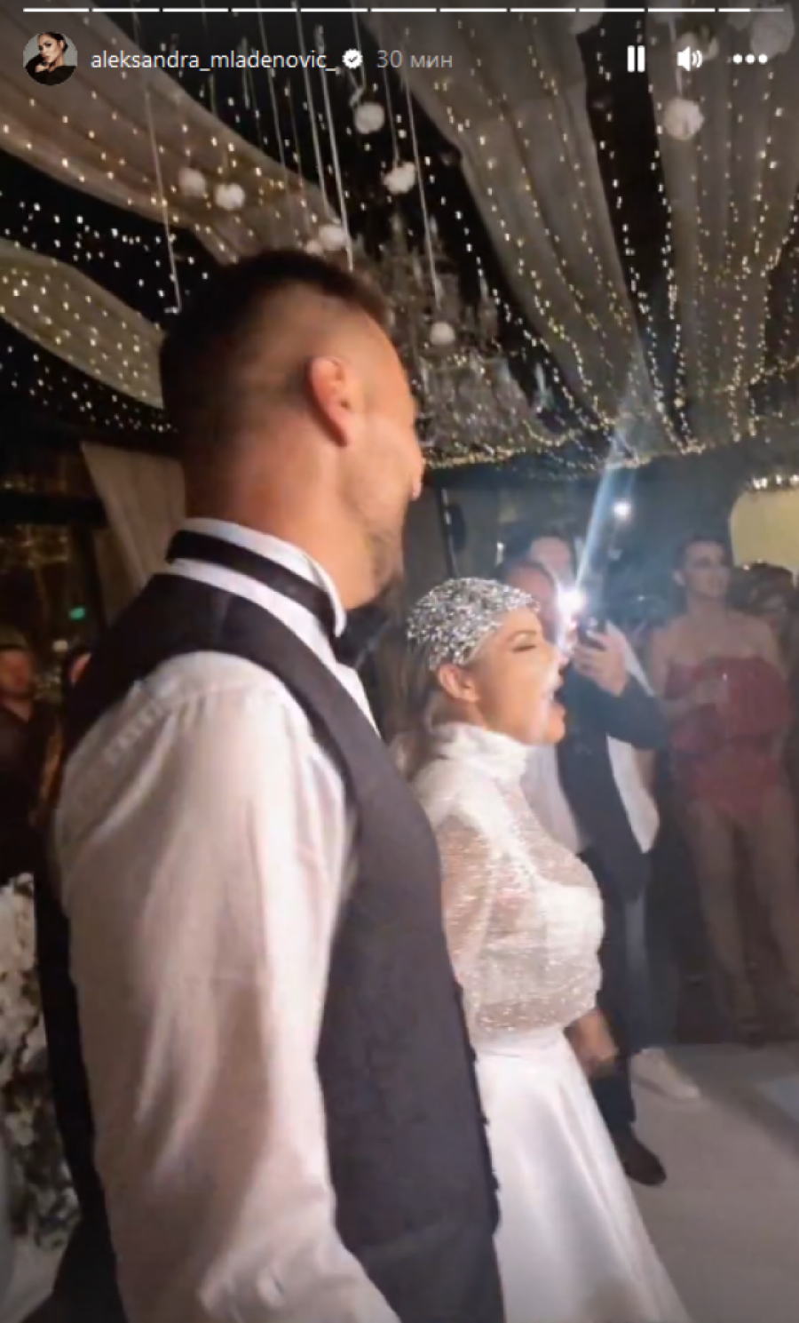Aleksandra se potom pohvalila da je uhvatila bidermajer, a putem društvenih mreža podelila je snimak na kom se vidi da se zvanice, ali i mladenci odlično provode.
