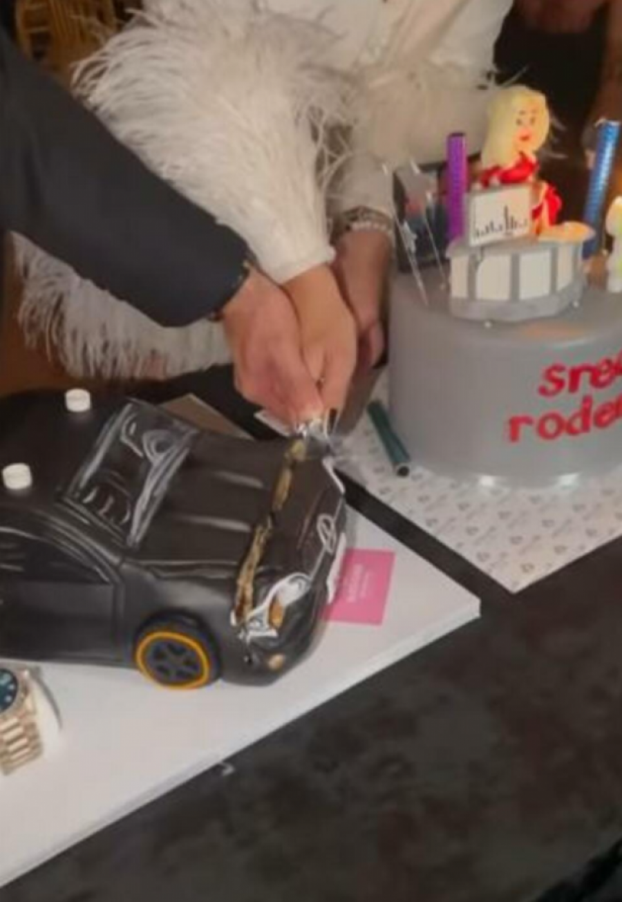 Jovana je rođendansku tortu koja je bila u obliku automobila sekla zajedno sa Vojislavom, baš kao na svadbi, što je nasmejalo mnoge. Nakon što su je isekli, Jovana je poljubila Vojislava u obraz.