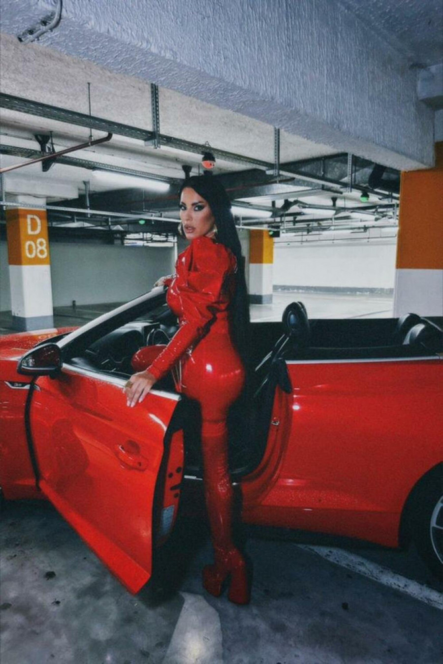 Seka je, naime, pozirala u uskoj crvenoj odevnoj kombinaciji, haljini od lateksa.