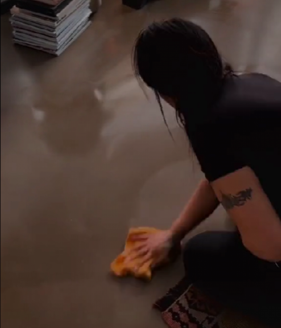 Ona je zatim uzela zoger kojim je ponovo prešla preko podova, kako bi bila sigurna da je sve dobro očistila.