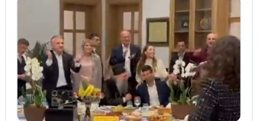 On se družio s tatom, dedom Srđanom i bakom Dijanom, a u jednom od kadrova se pojavljuje i malena Tara, koja je zaigrala kolo.