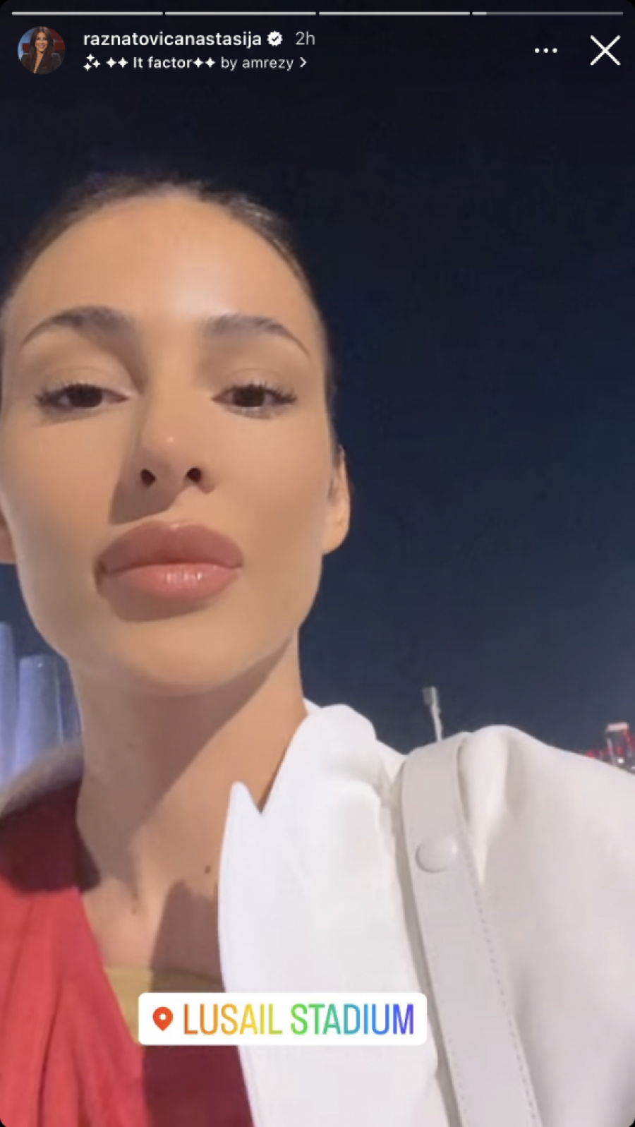 Pevačica Anastasija Ražnatović došla je u Katar kako bi sa tribina večeras bodrila reprezentaciju Srbije, ali i svog dečka, fudbalera Nemanju Gudelja.