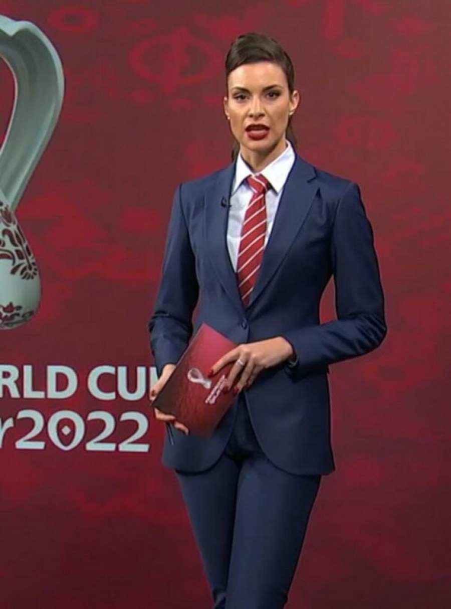 Atraktivna voditeljka Dragana Kosjerina važi za jednu od naših najlepših voditeljki, a večeras je naše reprezentativce bodrile u programu uživo u prenosu utakmice sa Brazilom na RTS-u, i to u muškom odelu.