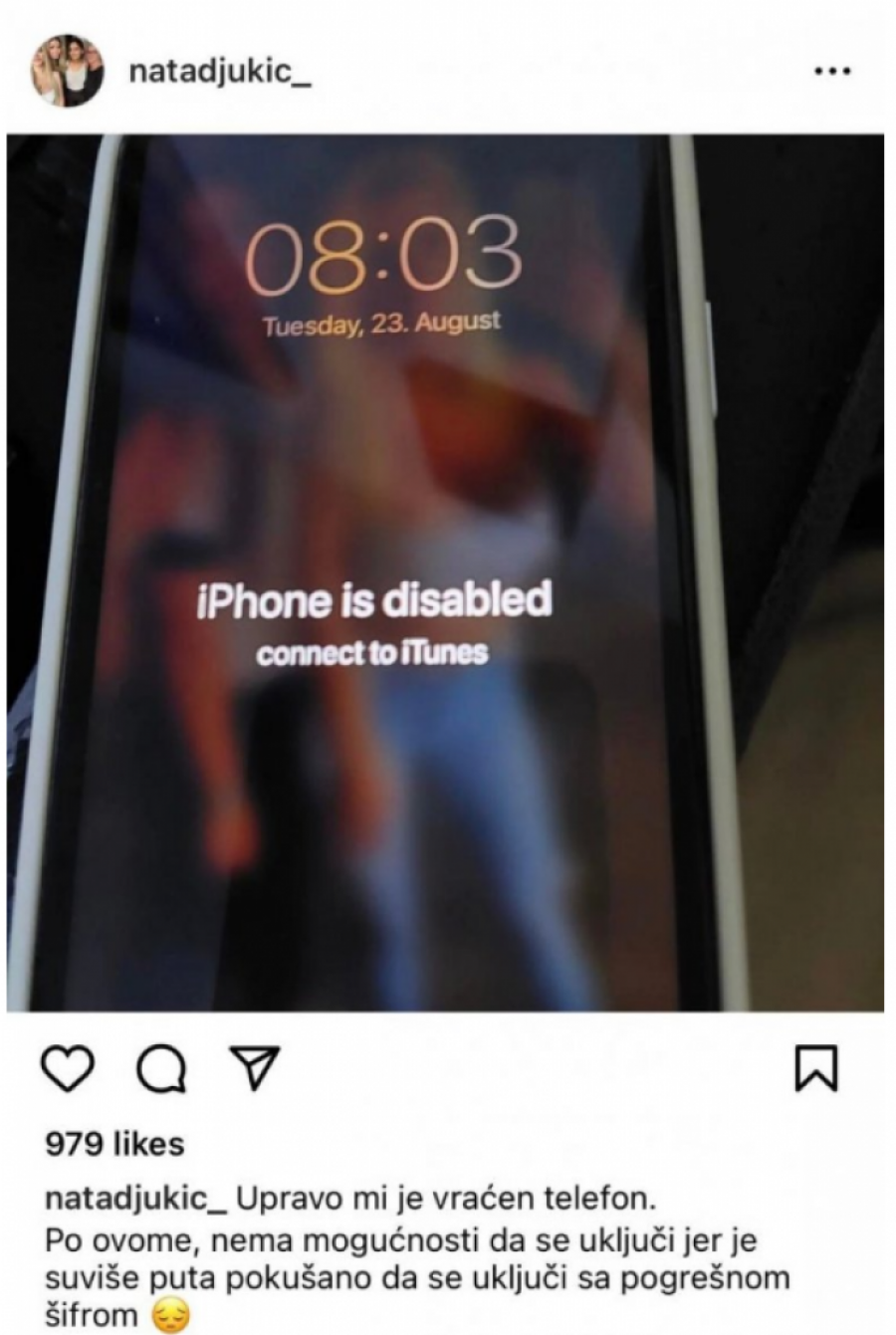 - Upravo mi je vraćen telefon. Po ovome, nema mogućnosti da se uključi jer je suviše puta pokušano da se uključi sa pogrešnom šifrom, a poslednji put u avgustu - napisala je Kikina majka koja je objavila i fotografiju mobilnog telefona.