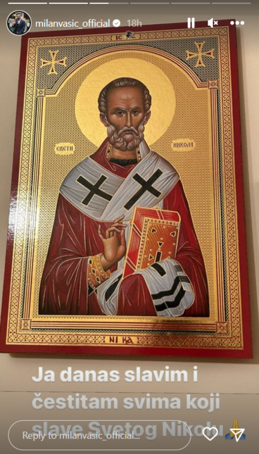 Među njima je Svetlana Ceca Ražnatović, pevač Sloba Radanović koji danas slavu obeležava u svom novom domu u Višnjičkoj banji. Zatim, glumac Milan Vasić je obavestio sve da u danas slavi Svetog Nikolu i čestitao je svima koji slave, a onda podelio fotografiju sa porodicom.