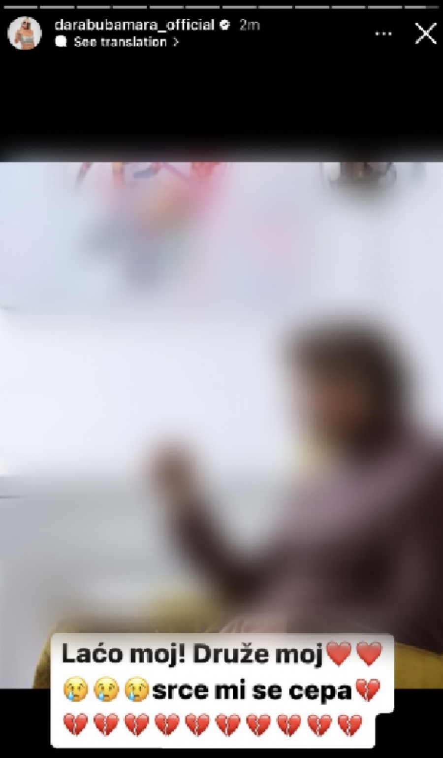 - Laćo moj! Druže moj! Srce mi se cepa - napisala je Dara na Instagramu.