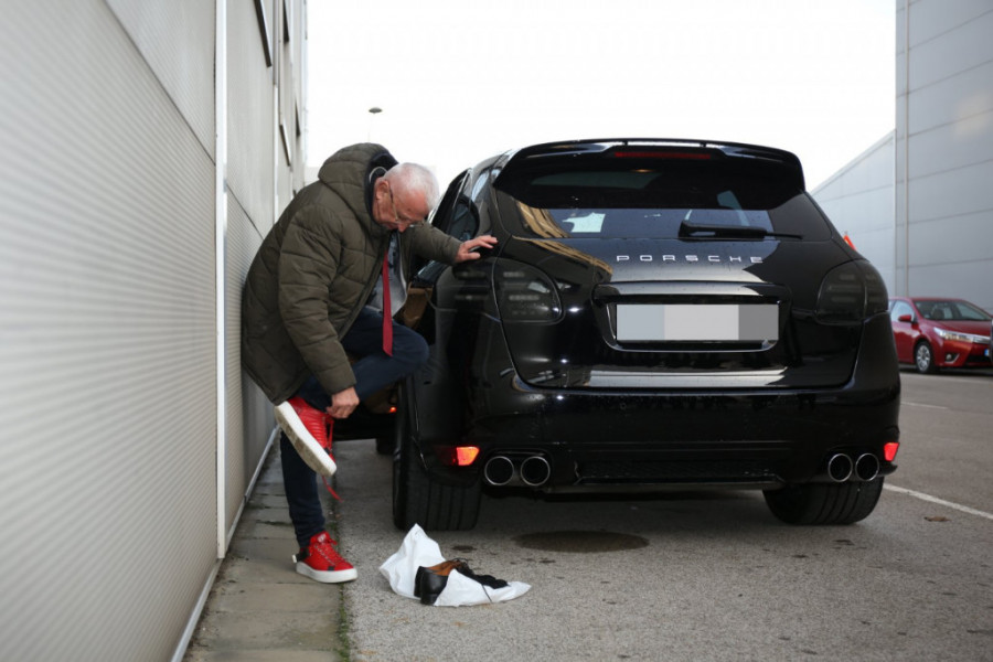 Ono što je svima zapalo za oko jesu njegove drečavo crvene patike, koje je folker krenuo da izuva nasred parkinga, kako bi u studio ušao spreman. Ojdanića očigledno baš briga šta će ko reći, te nije mario za znatiželjne poglede koji su se okretali i upirali prstom.