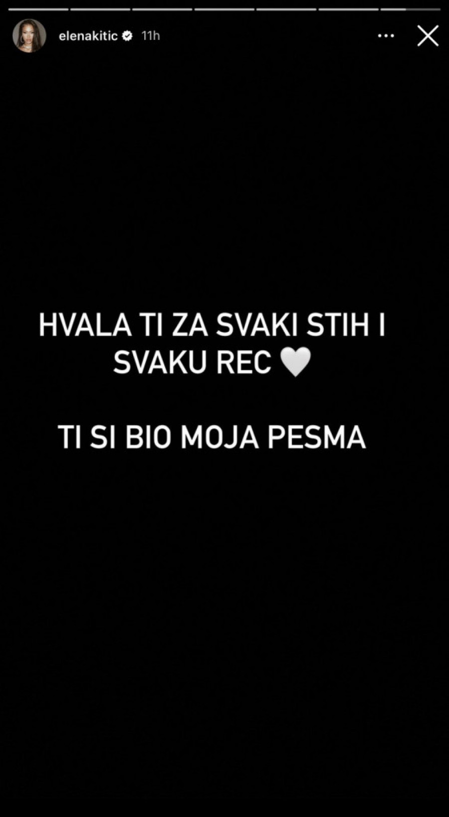 - Hvala ti za svaki stih i svaku reč. Ti si bio moja pesma - napisala je Elena na društvenoj mreži Instagram.