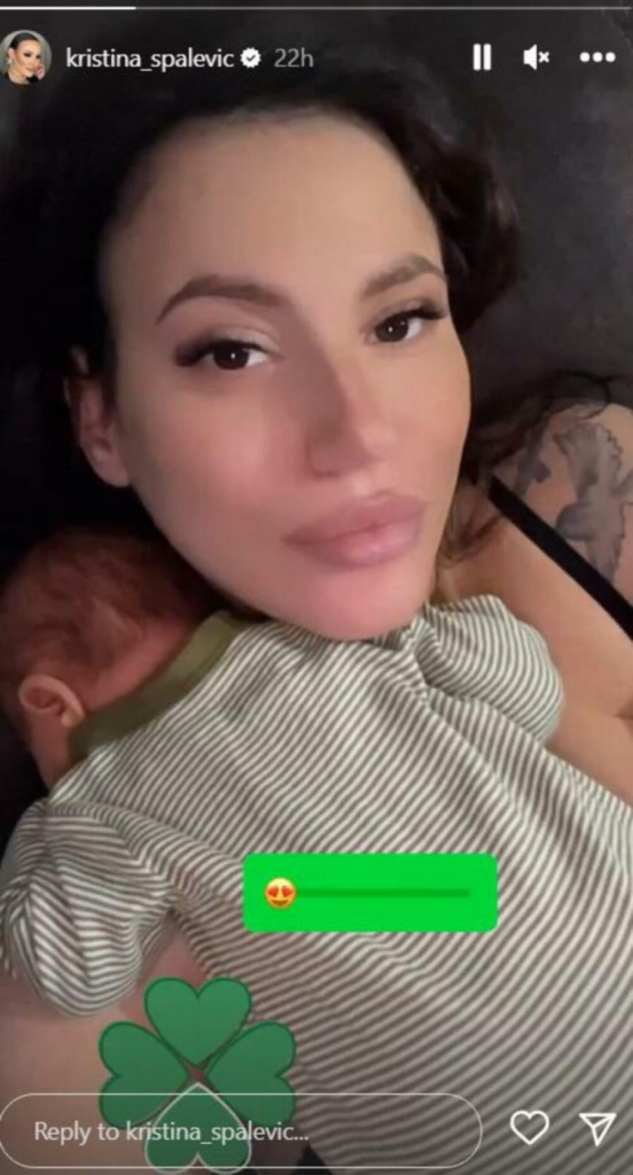 Kristina i njen sin su odmarali su u svom dom, a ona je zabeležila trenutak dok je mališan spavao na njenim grudima. Prizor je raznežio sve, a novi niz čestitku usledio je ispod objave.