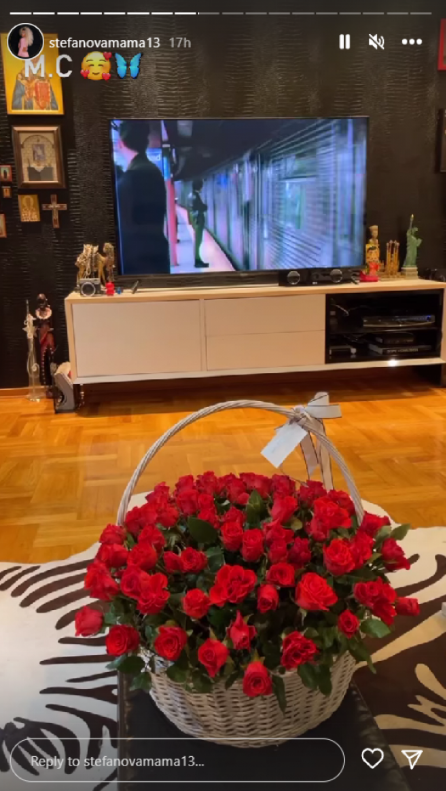 Naime, Dabovićeva je od dobro poznatih razgolićenih snimaka na koje smo navikli prešla na malo svedeniju varijantu, te se ovog puta nije snimala polugola, u donjem vešu, već je pokazala deo stana i poklon koji je dobila - korpu crvenih ruža.