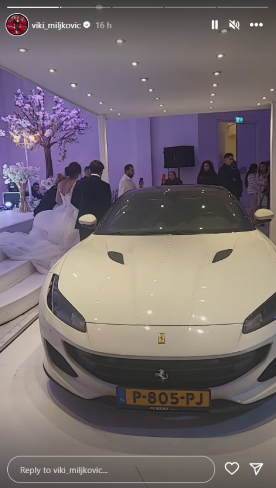 U jednom momentu stigao je u salu poklon za mladence - automobil koji košta 250.000 evra.