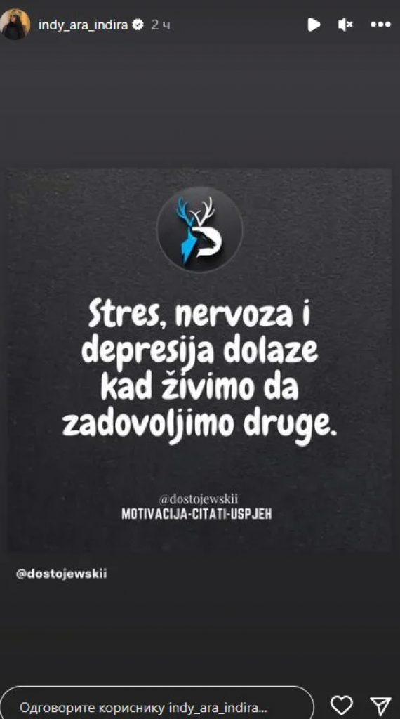 - Stres, nervoza i depresija dolaze kad živimo da zadovoljimo druge - napisala je Indi na svom Instagram profilu, a mnogi su shvatili da će upravo ovu naviku odmah promeniti.