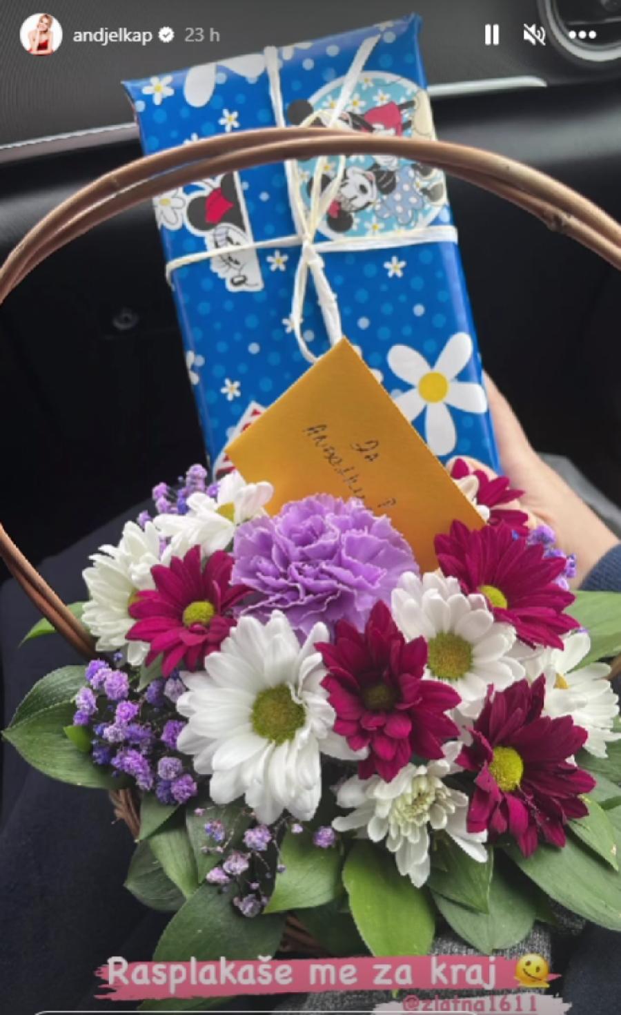 Naime, Anđelka je ovu odluku obelodanila na Instagram profilu i nije krila suze. Pokazala je buket cveća koji je dobila, kao i poklon, uvijen u plavi papir, zbog čega su mnogi odmah pomislili da je to znak da čeka dečaka.