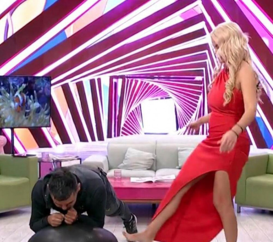 Sada je, obučena u dugu, crvenu haljinu i visoke potpetice, završila na patosu. Gost u studiju je bio trener koji je želeo da testira i Sanju i njene kolege.