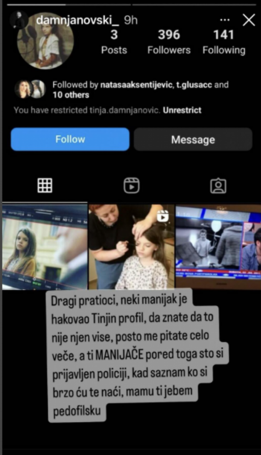 - Veoma sam oprezan i uplašen kada se radi o bilo kakvom nasilju, bilo fizičkom bilo na internetu. Posebno sam osetljiv kada su deca u pitanju. U ovom slučaju hakovanje profila moje ćerke je bio najmanji problem, međutim problem postaje veliki i ozbiljan kada osoba koja je preuzela njen nalog pokuša na sve moguće načine da dopre do podataka drugih ljudi - započinje Peđa i nastavlja: