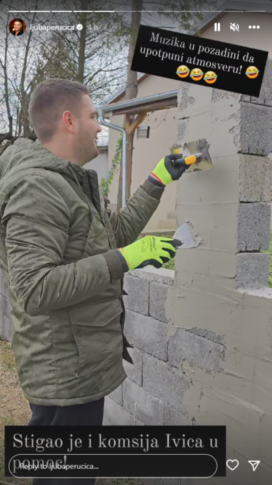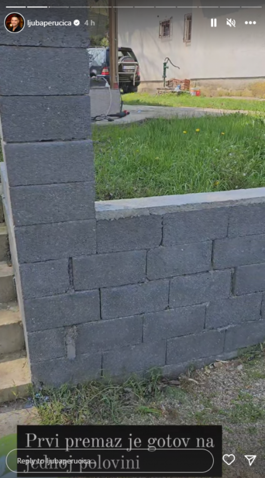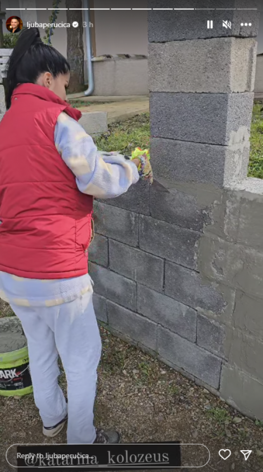 Pevač Ljuba Perućića na društvenoj mreži Instagram objavio je kako sa suprugom i bivšom voditeljkom Katarinom Kolozeus zajedničkim snagama zidaju ogradu oko njihove vikendice.