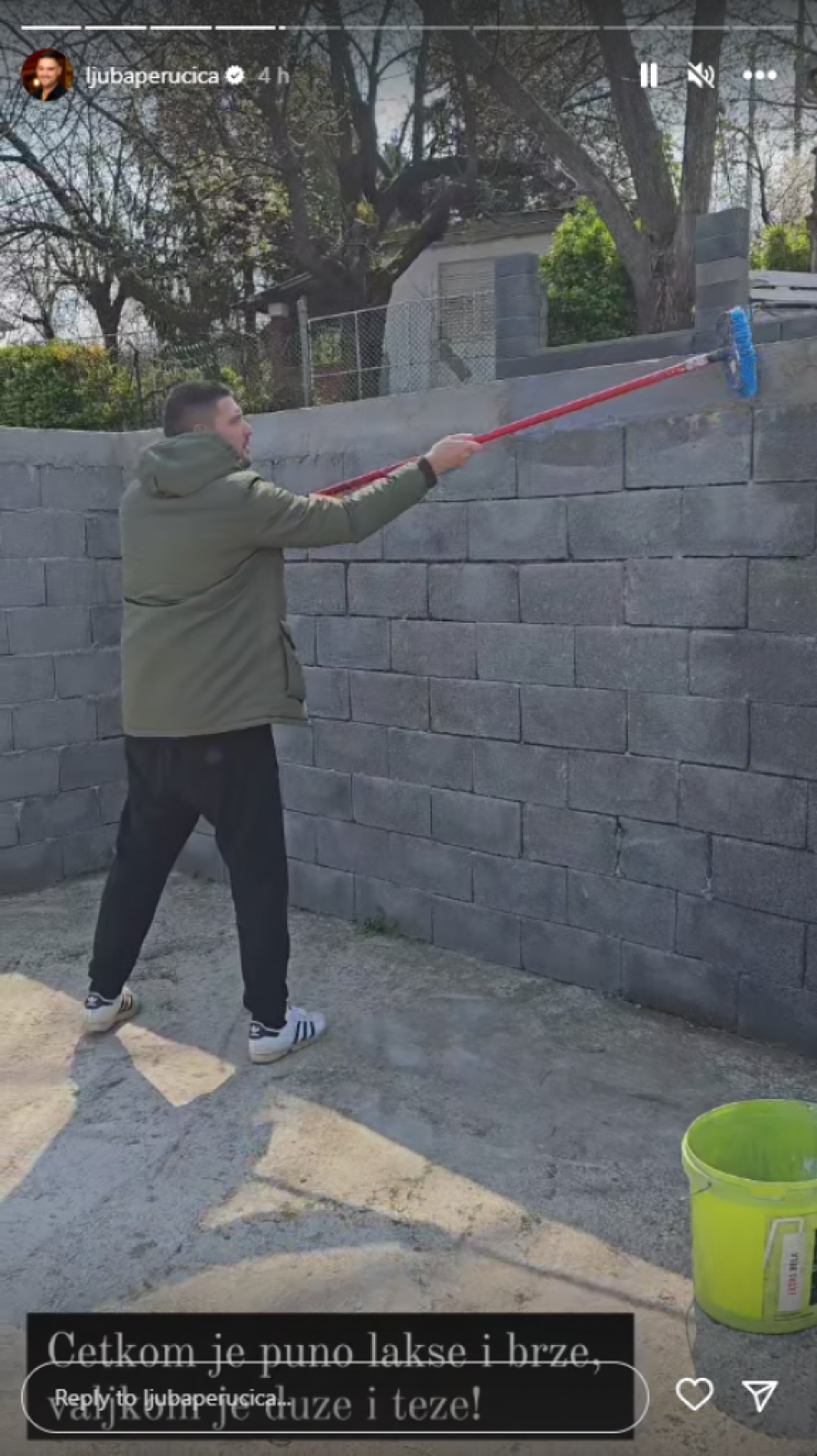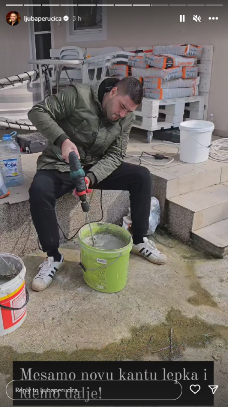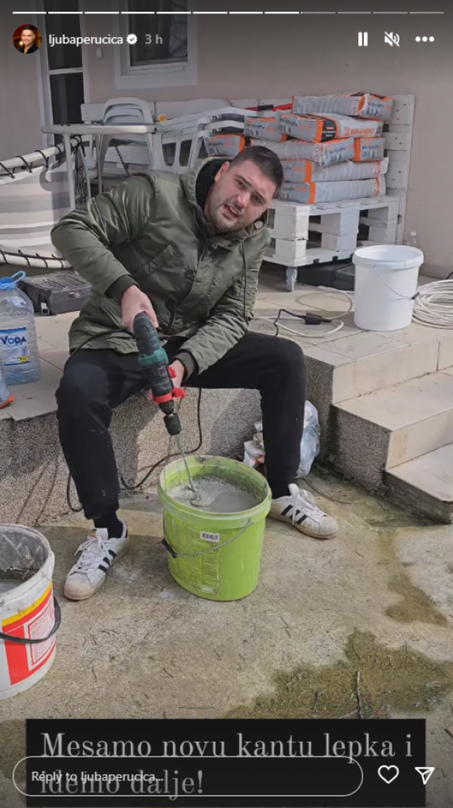 Pevač Ljuba Perućića na društvenoj mreži Instagram objavio je kako sa suprugom i bivšom voditeljkom Katarinom Kolozeus zajedničkim snagama zidaju ogradu oko njihove vikendice.