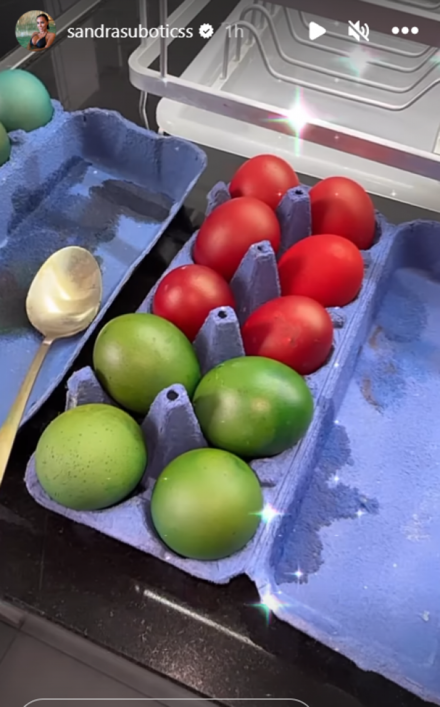 Bivša rijaliti učesnica Aleksandra Subotić pokazala je proces farbanja jaja koja je do sada ofarbala u jednobojne boje, dok je Nikola Grujić Gruja pokazao kako ove godine jaja farba njegova ćerka.