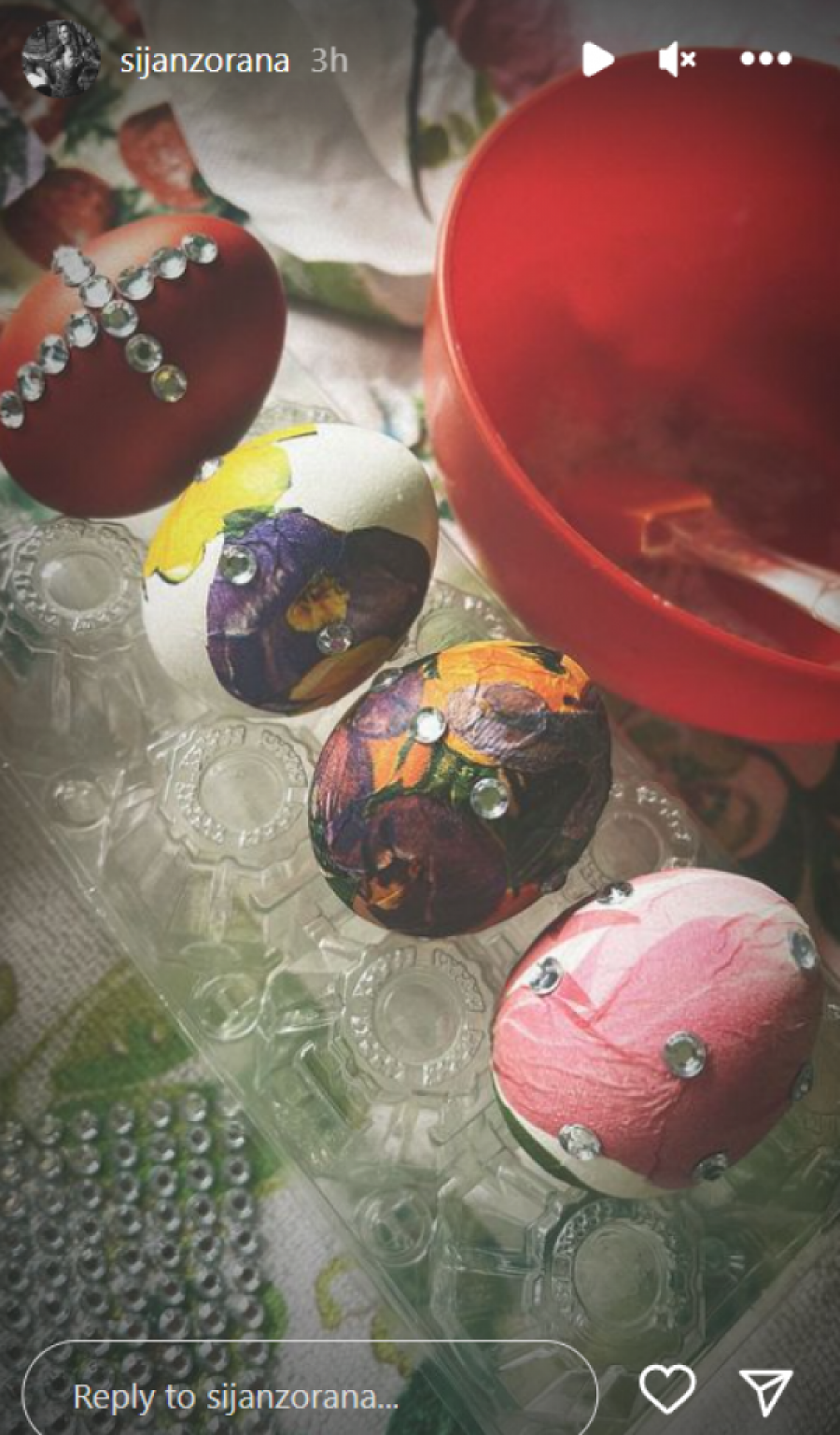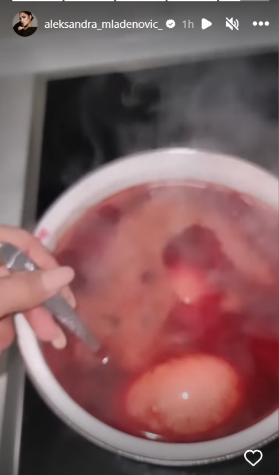 Pevačica Aleksandra Mladenović je otkrila na koji način ona farba jaja, te je podelila snimak na kom vadi jaje iz jarko crvene boje. S druge strane, Jeleni Kostov u farbanju jaja pomaže njen sin, a sudeći po fotografiji veoma je maštovit i talentovan.